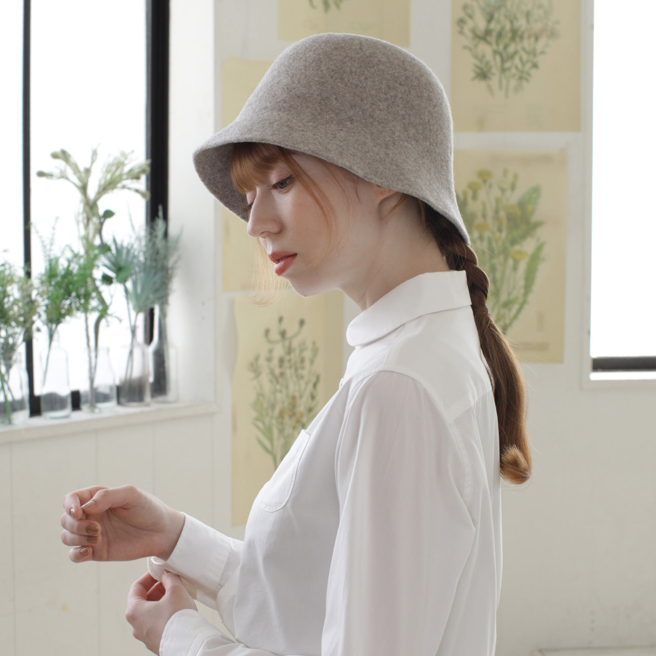ちょうどいいつば感に仕上げた帽体風のバケットハット。軽く被れるのがうれしい。
