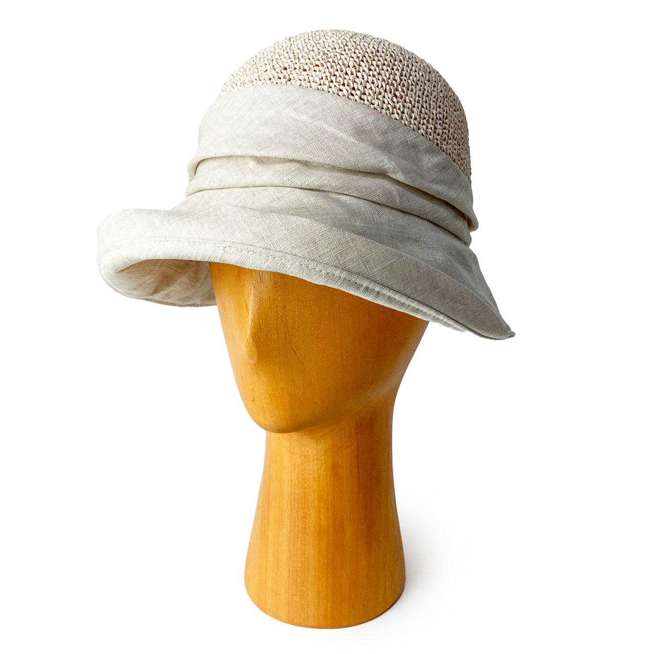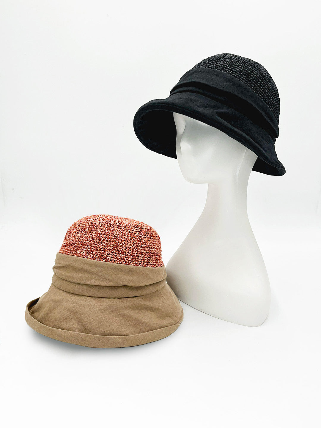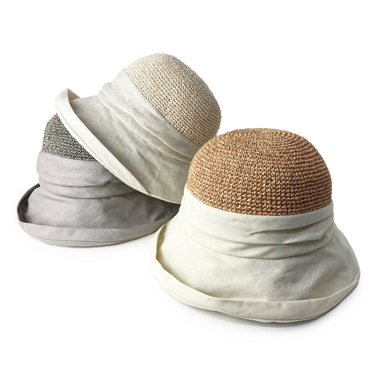 クラウンを細編みにして涼しく、庇には遮光芯を入れて機能を取り入れた人気のハットがアクアメランジェより登場。サイズもカラーも豊富に揃えました。