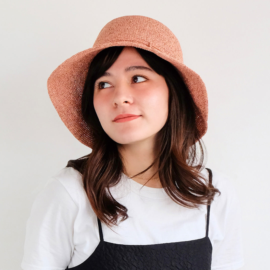 編地が更に細かくなって軽量化したアクアメランジェの手編みの小つばタイプです。
