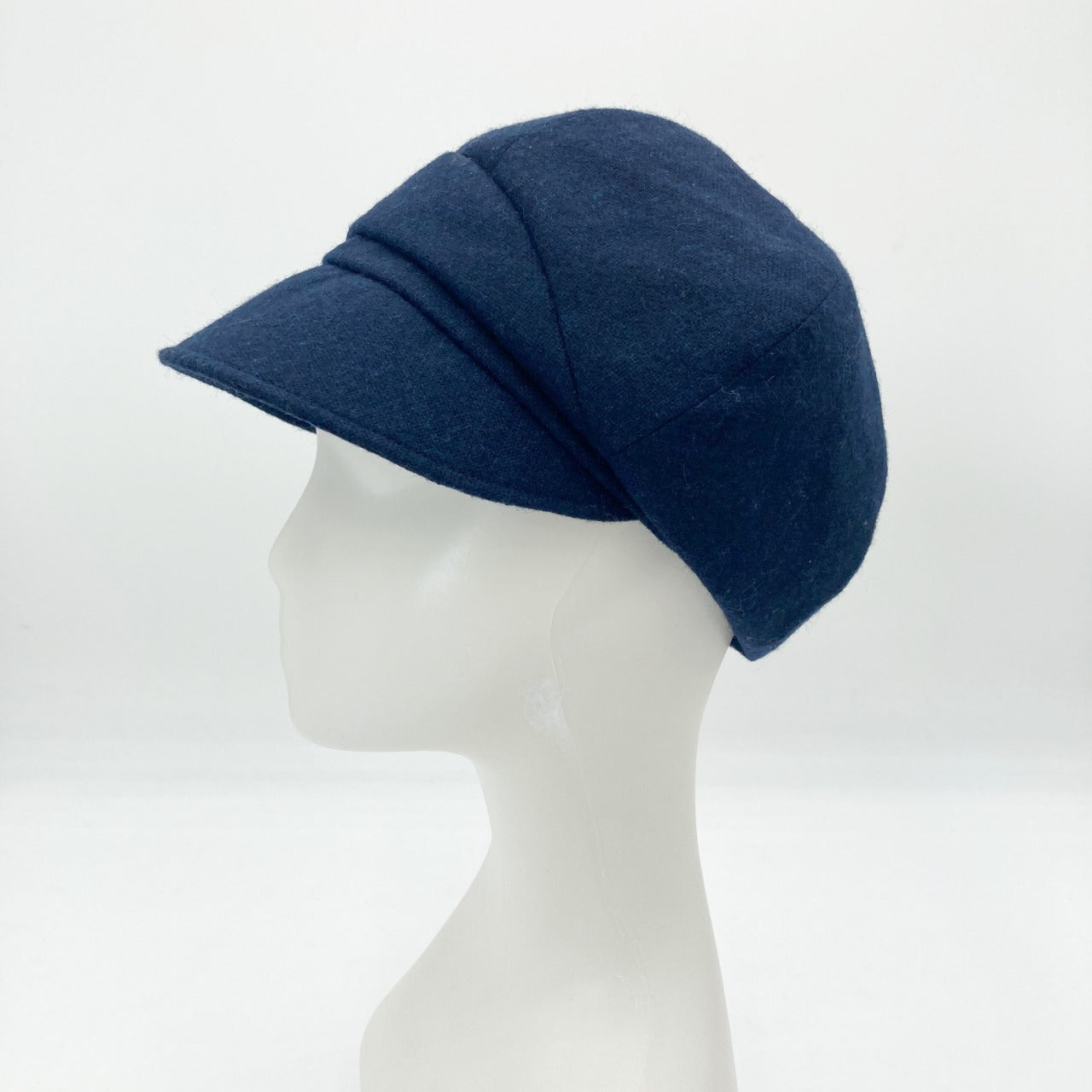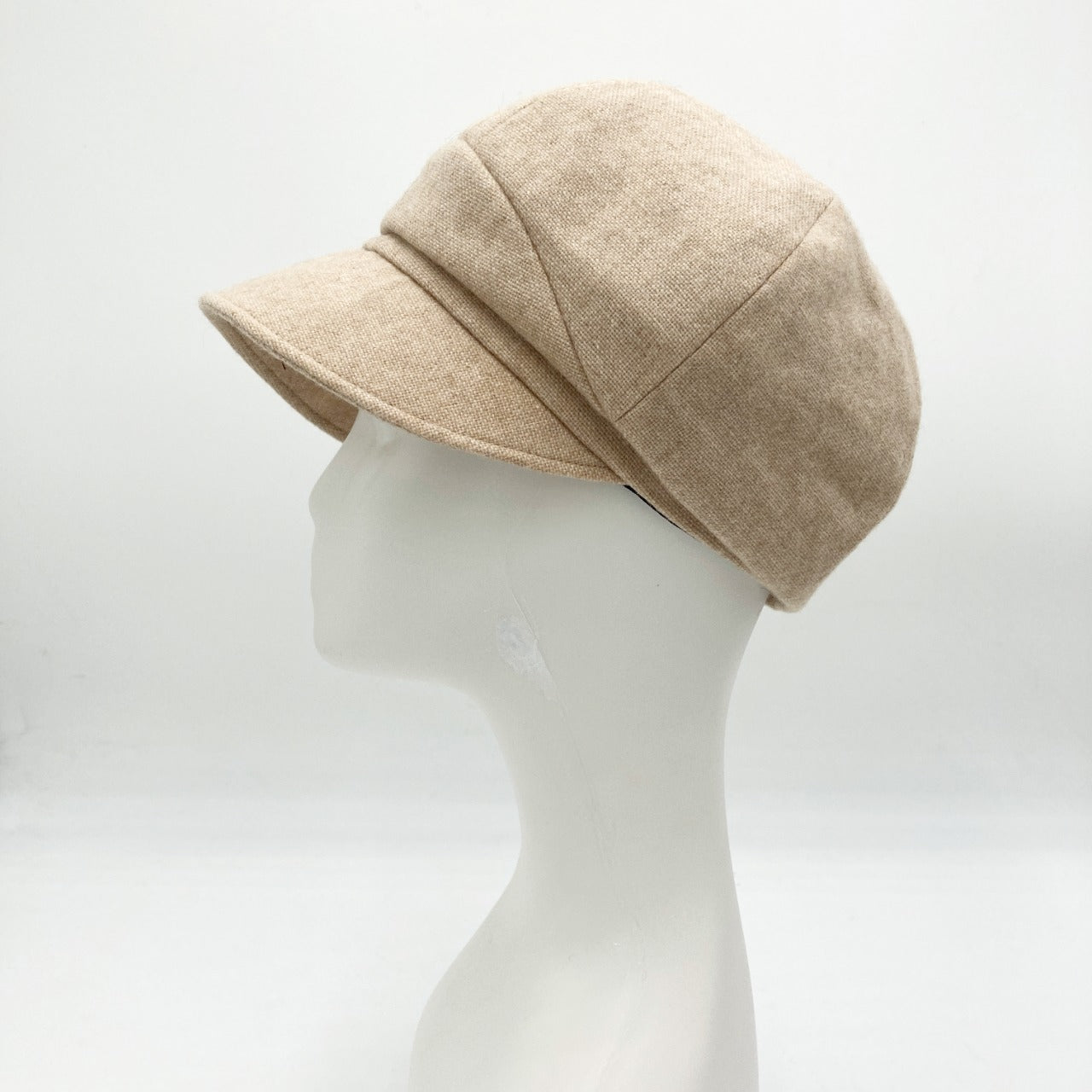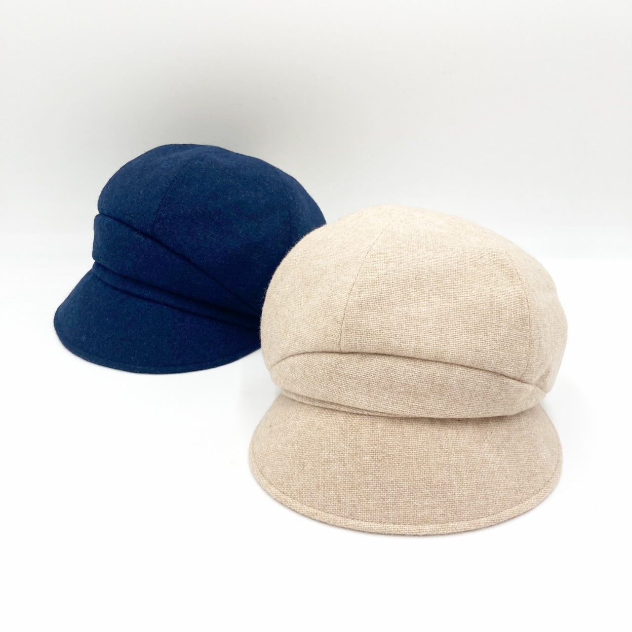 ウールの小ぶりのキャスケットは切り替えがポイント。あたたかな風合いとカラーです。