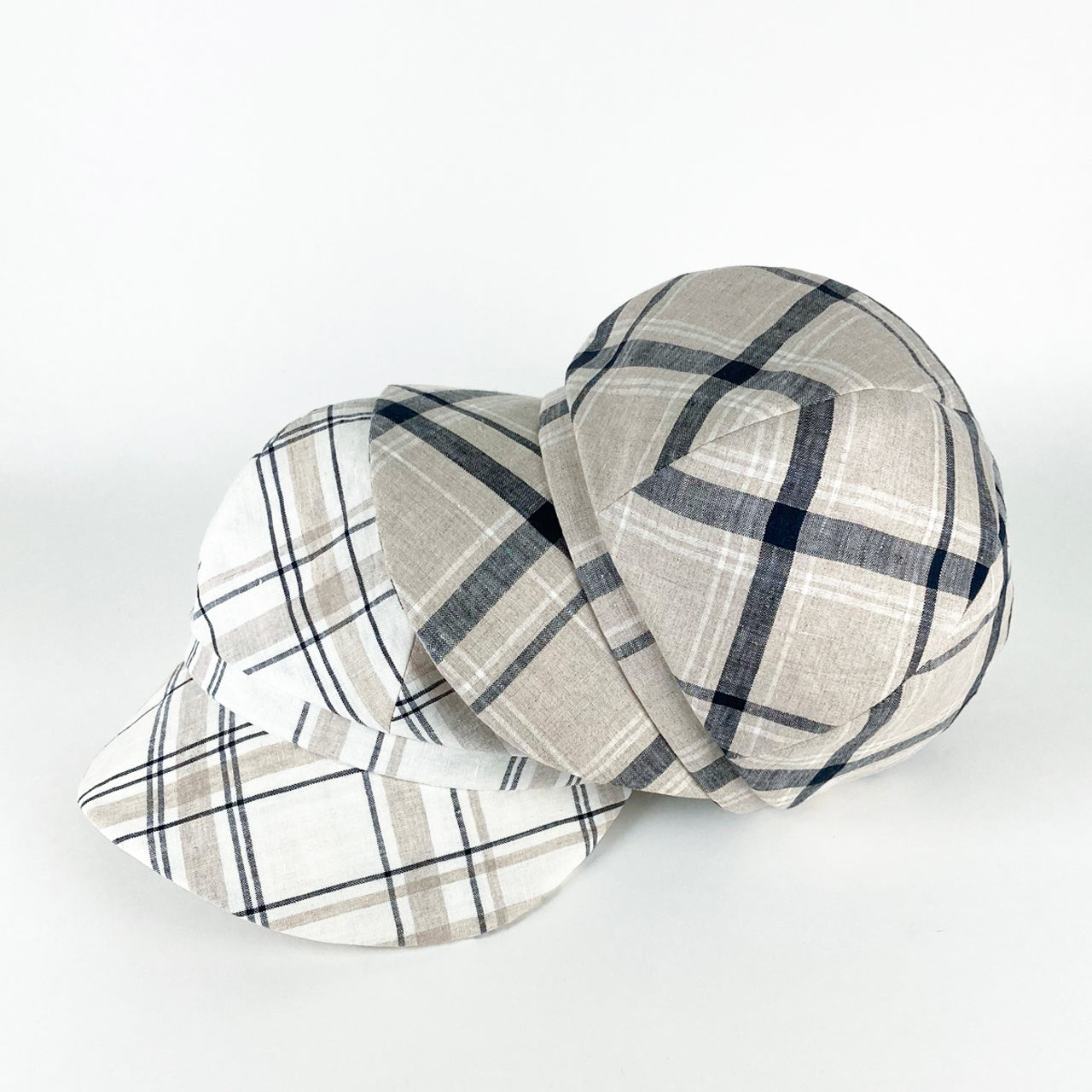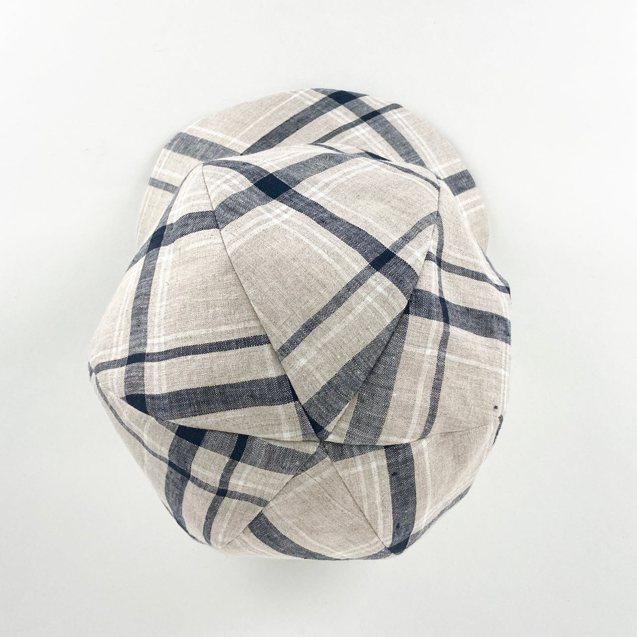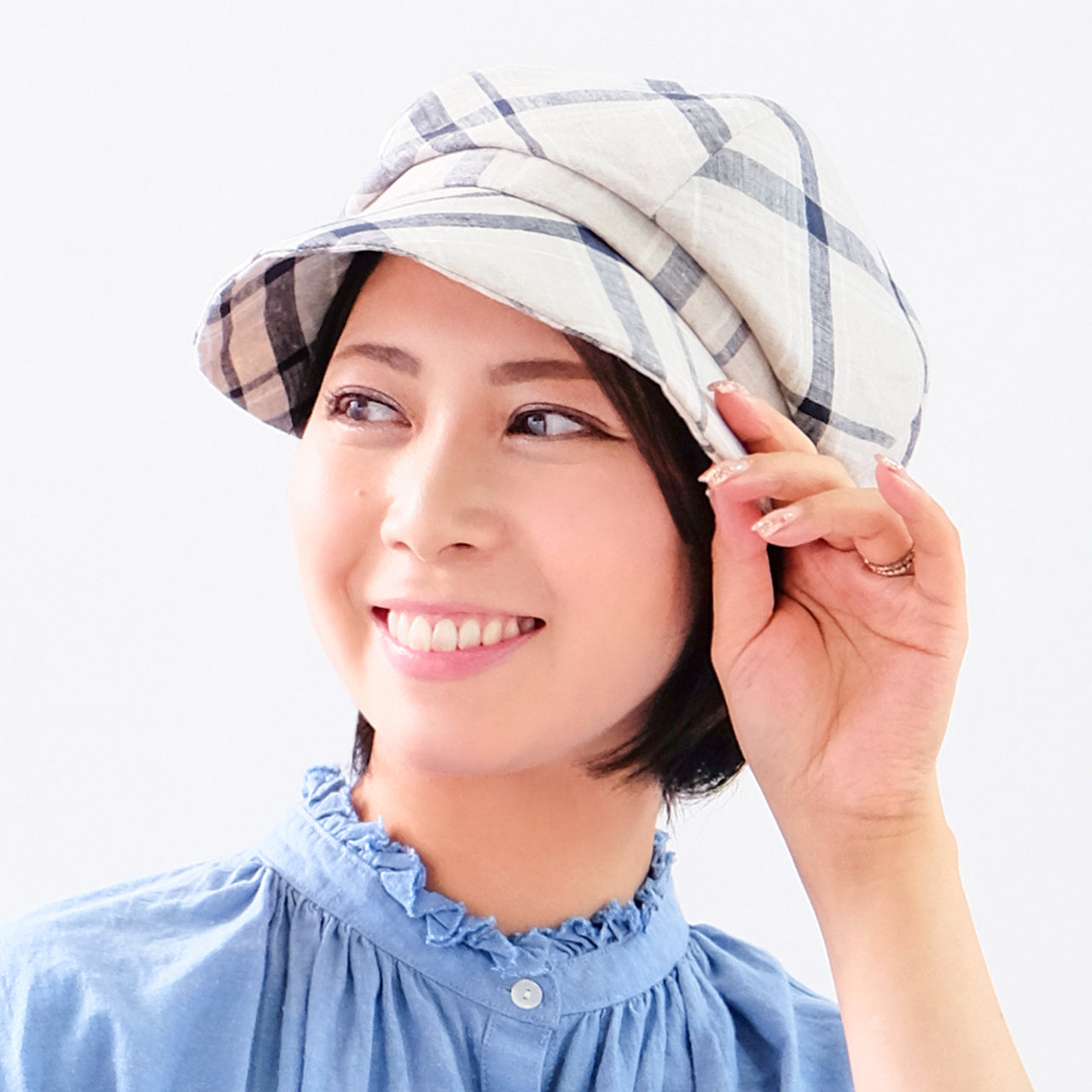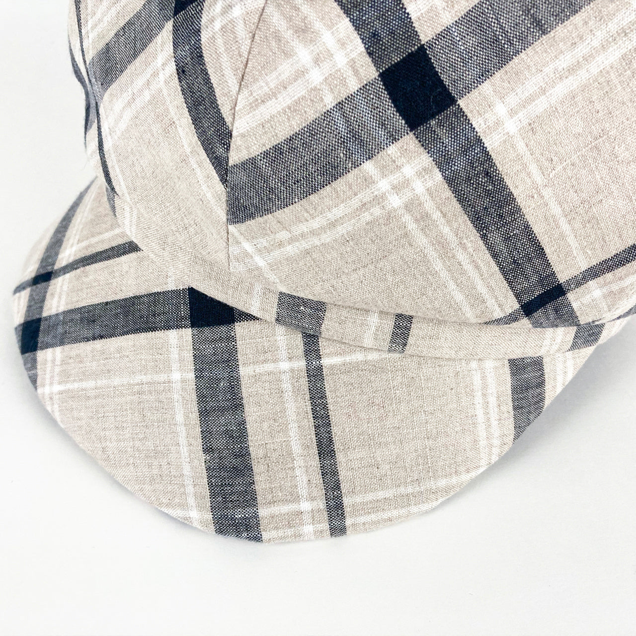 ナチュラルなリネンチェック生地のキャスケットはスタイルの主役にピッタリ。被りやすい深さとボリュームに仕上げました。(布帛キャスケット)