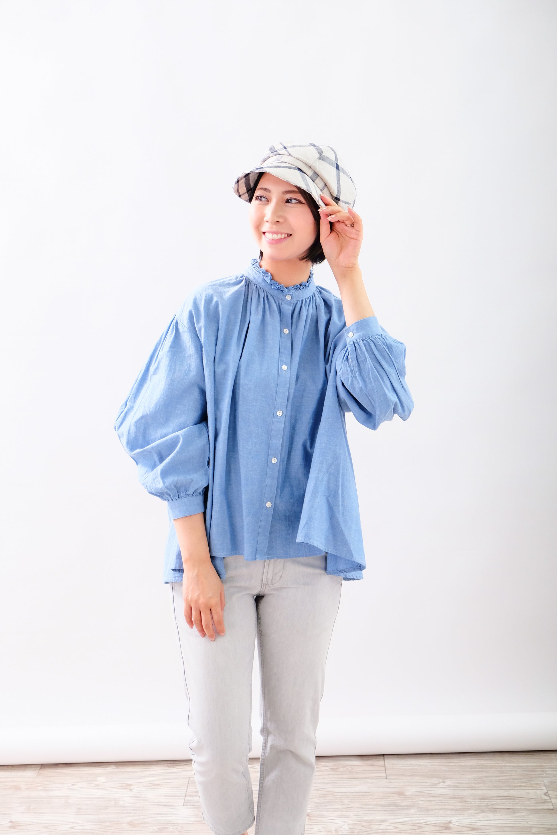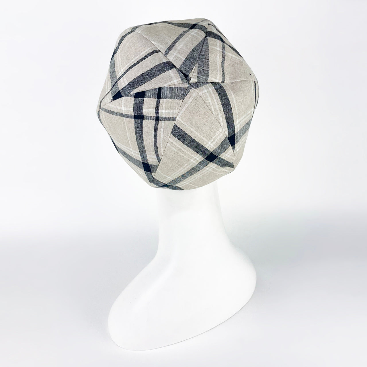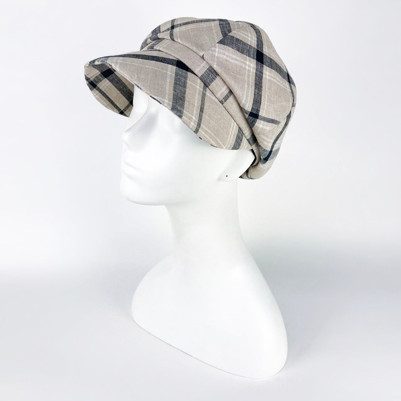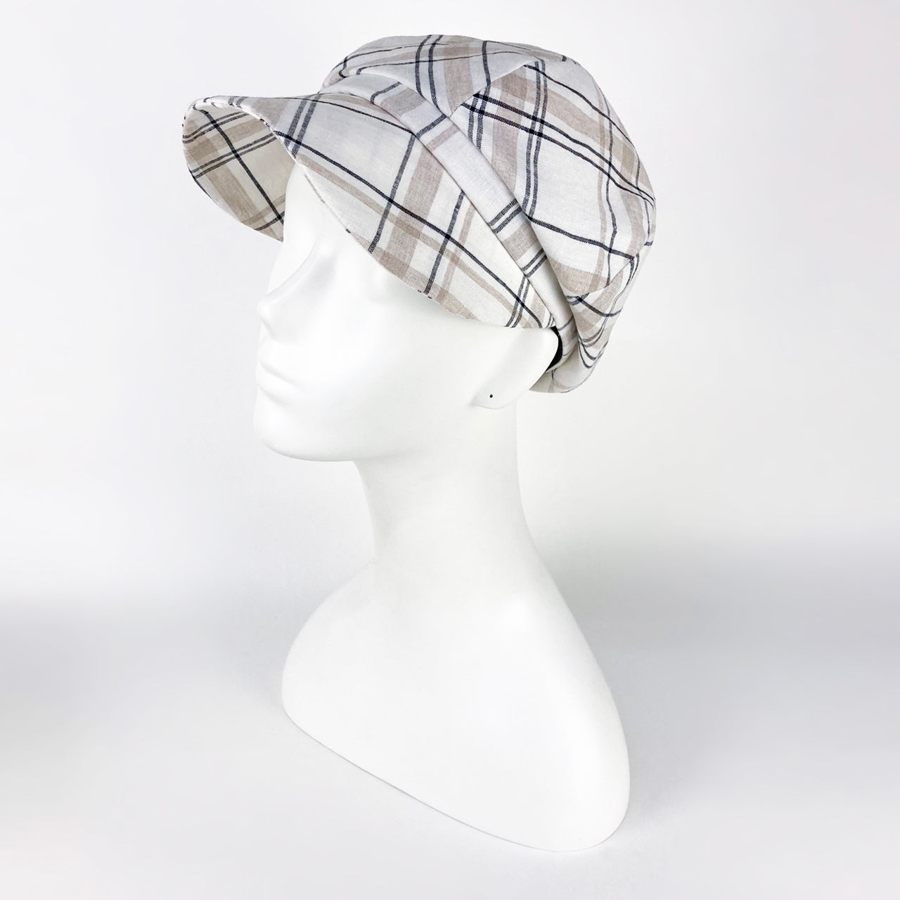 ナチュラルなリネンチェック生地のキャスケットはスタイルの主役にピッタリ。被りやすい深さとボリュームに仕上げました。(布帛キャスケット)