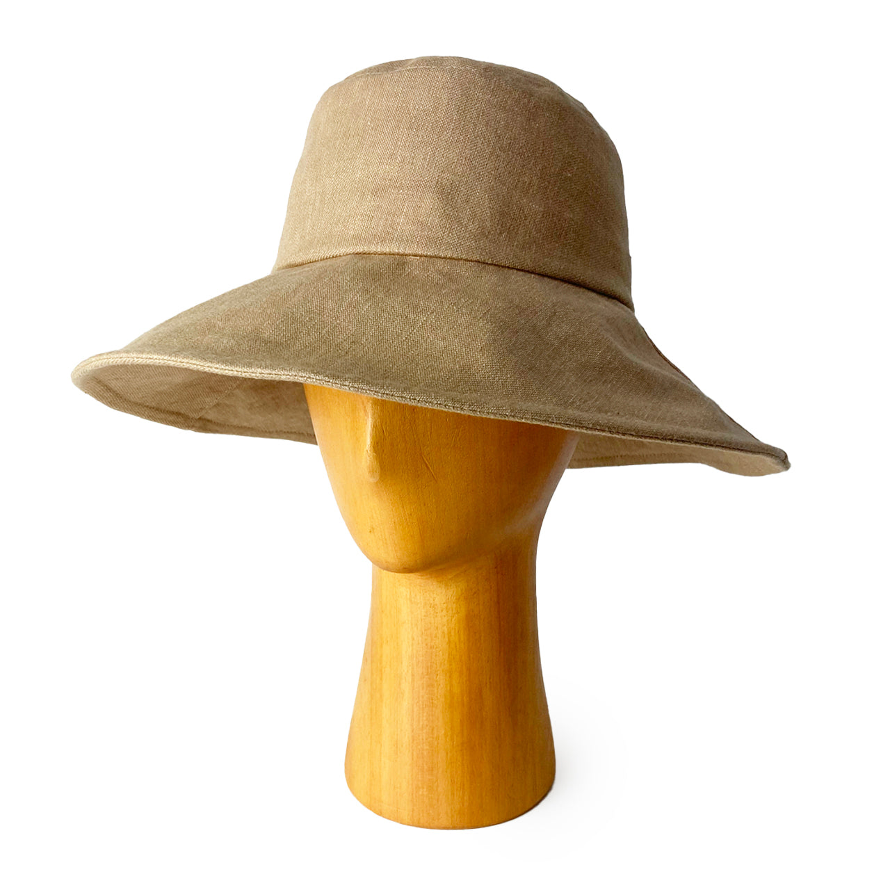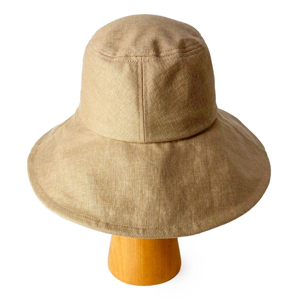 ざっくりしたリネンの広つば。さわやかなアースカラーな3色展開。