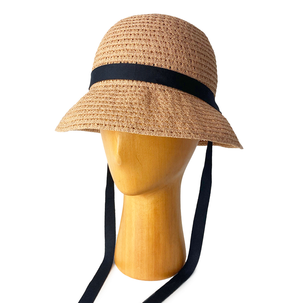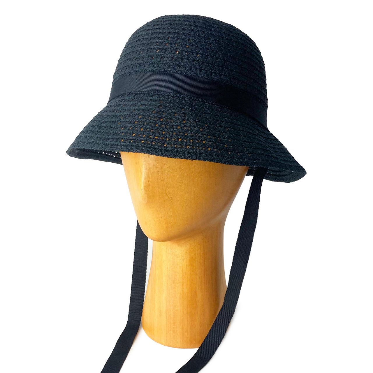 柄ブレードのバケットハット。垂らしの紐は軽く結んでもかわいらしい。