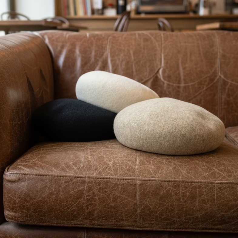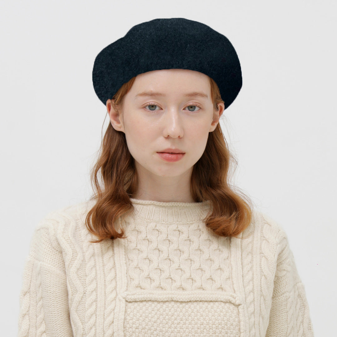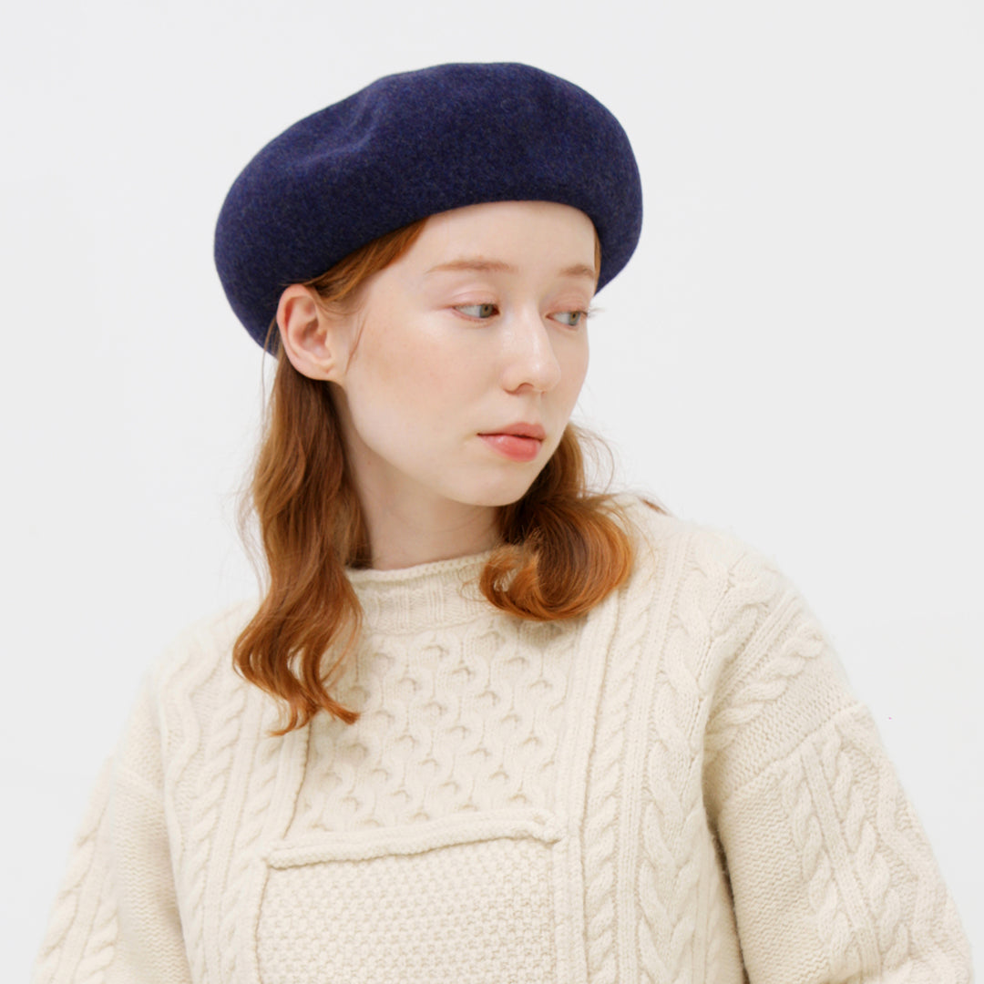 小ぶりで被りやすいシンプルなベレー。軽くて暖かい素材です。