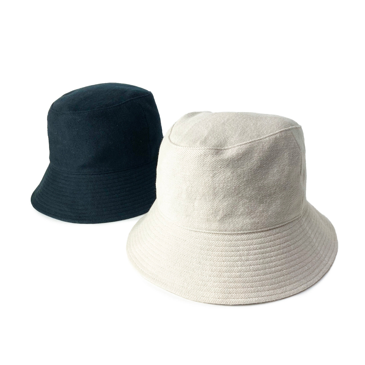 しっかりと張りのある少し起毛がかかっているオーガニック生地を使ったバケットハット。