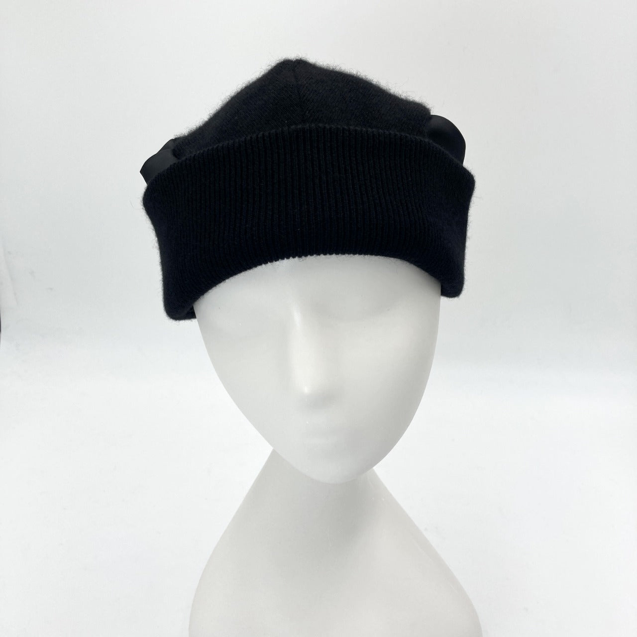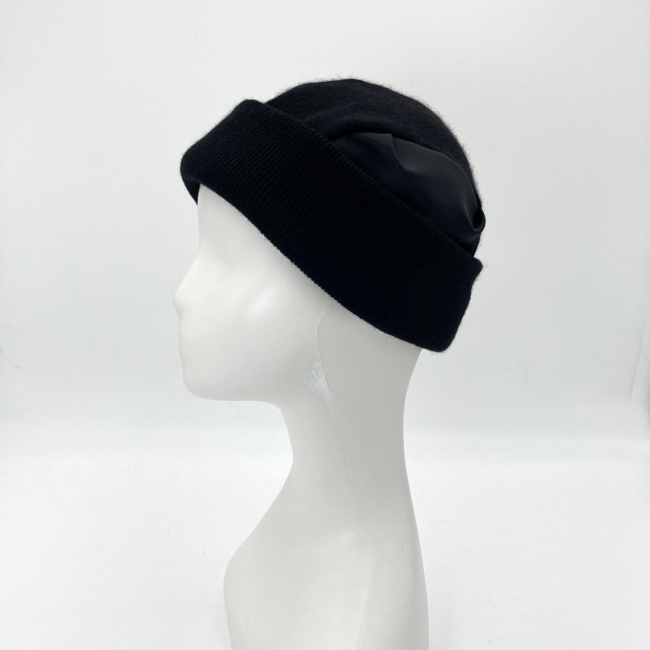 カシミヤ100%のニットとインポートタフタを使用した異素材コンビのワッチです。 タフタ部分にはタックを入れ帽子に動きを出しております。