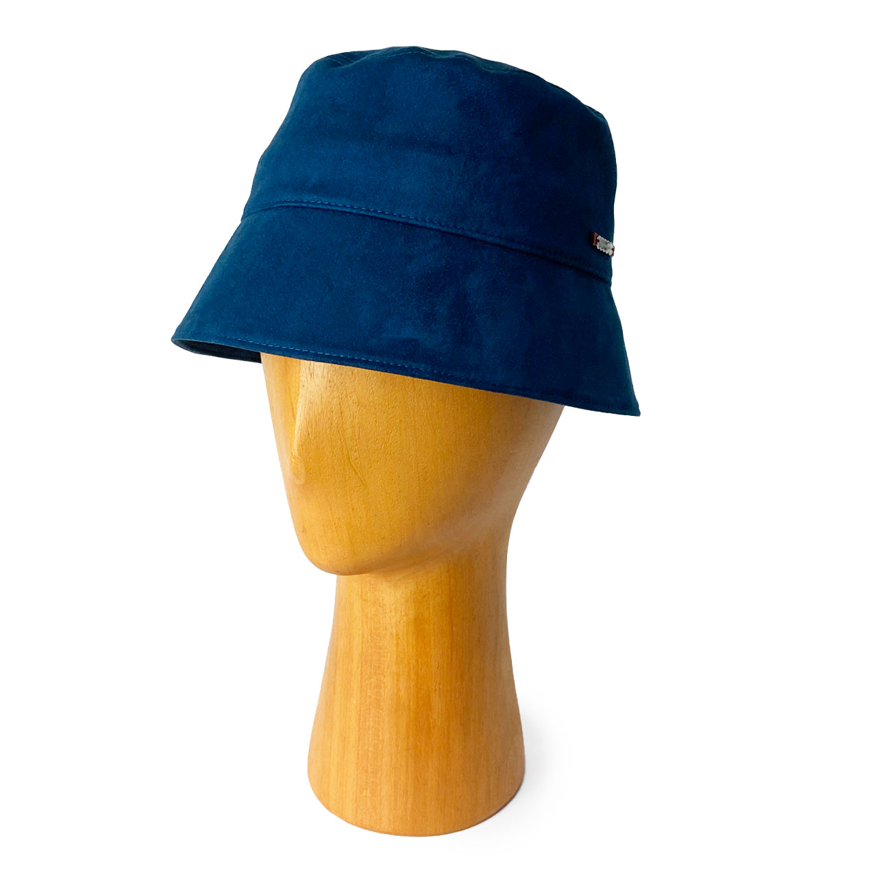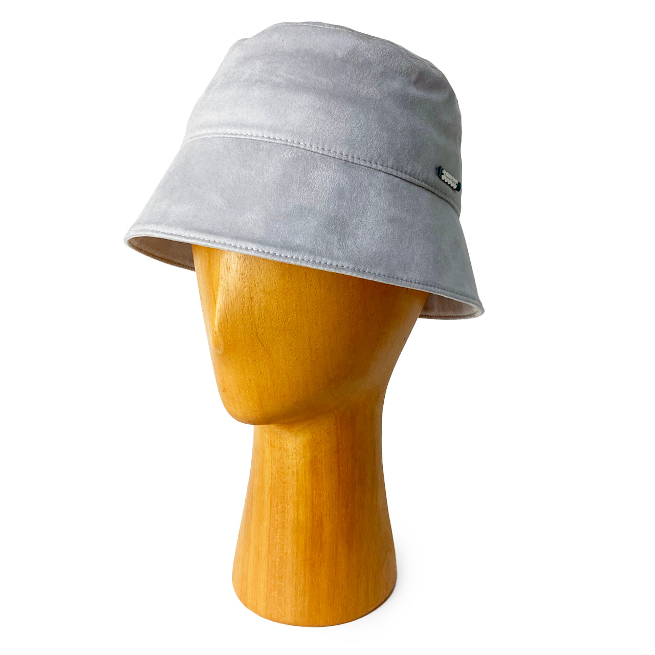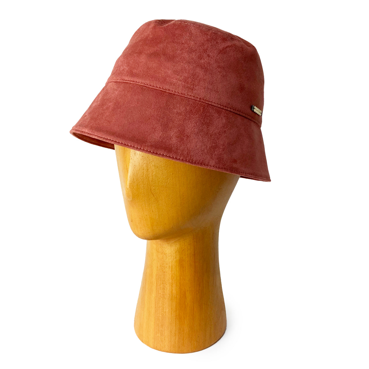 スエード調の生地はしなやかで、軽く、被り心地がよいバケットハットに仕上がりました。秋の夕暮れのイメージです。