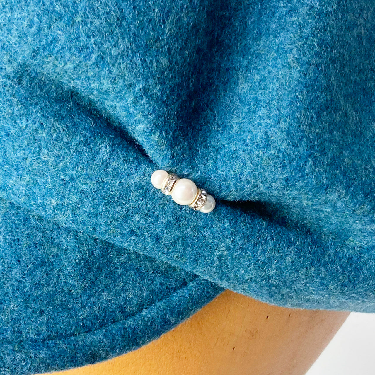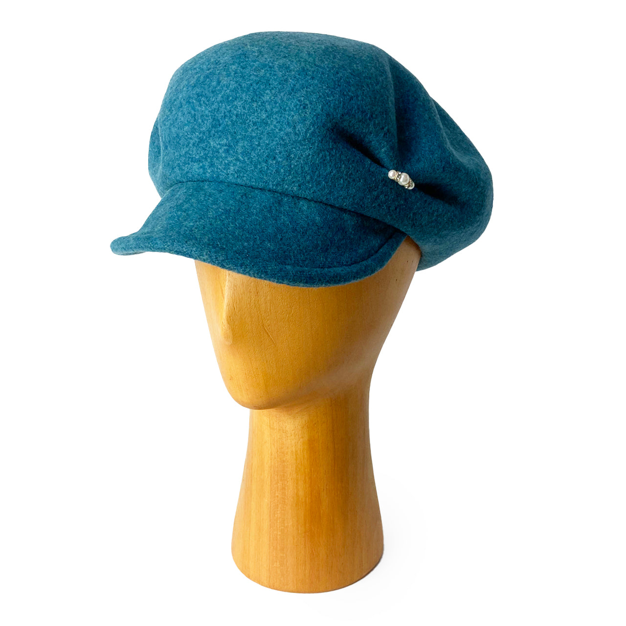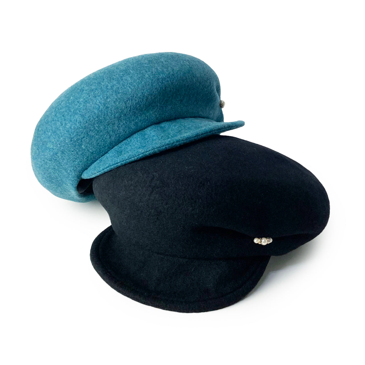 タック入りにパールを付けたキャスケットは、ふんわりしていて自由に被れる優れもの。庇があり小顔効果○