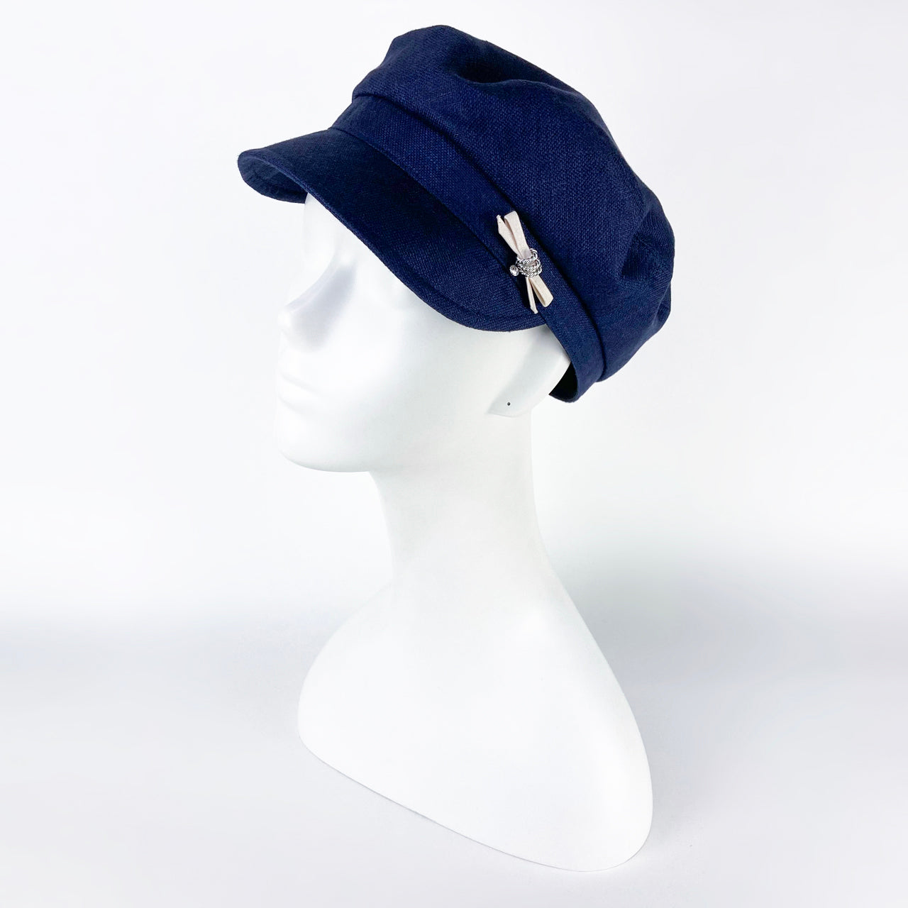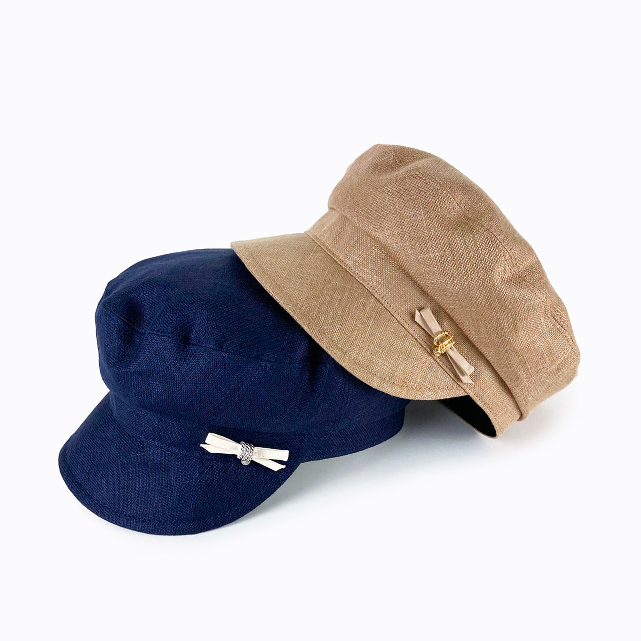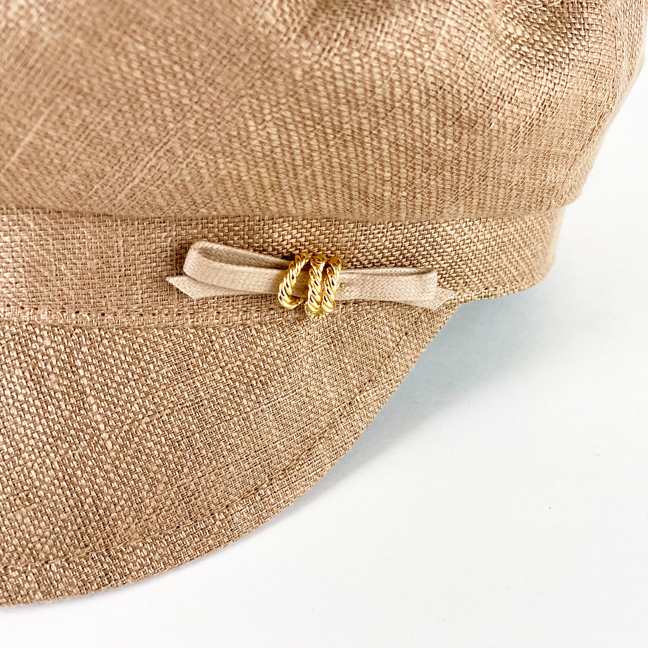 フレンチリネンの生地を使ったマリンキャプ。織のナチュラルな風合いと清涼感がある仕上がりです。(布帛マリンキャップ)