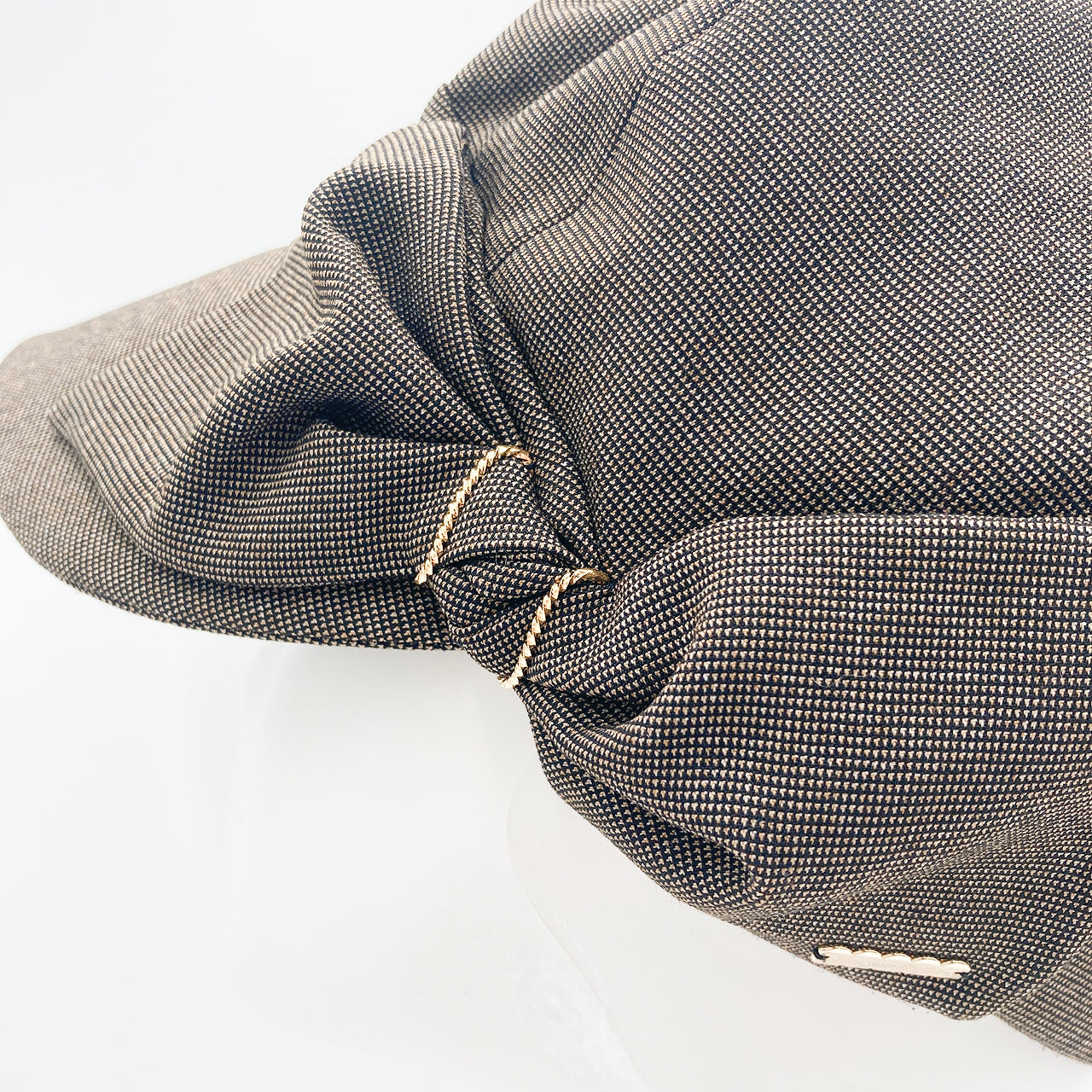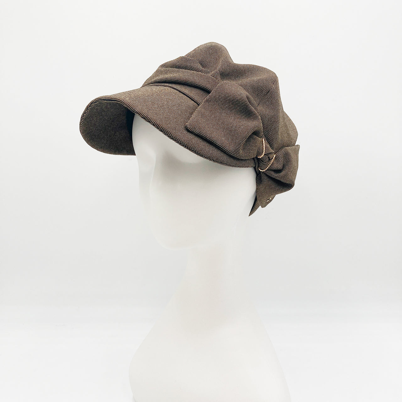 大きなリボンが付いた、キャスケットは腰がドレープになっていてフェミニンムード。
