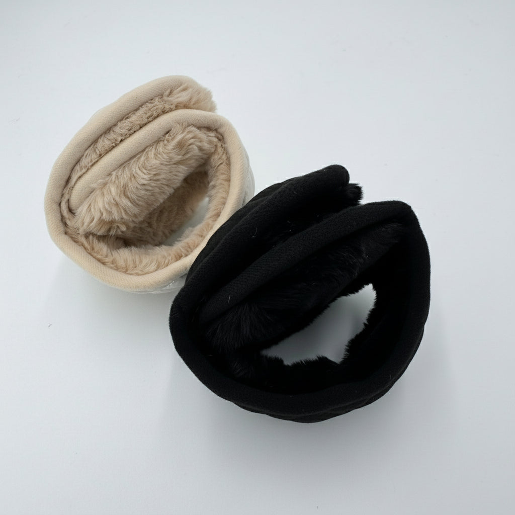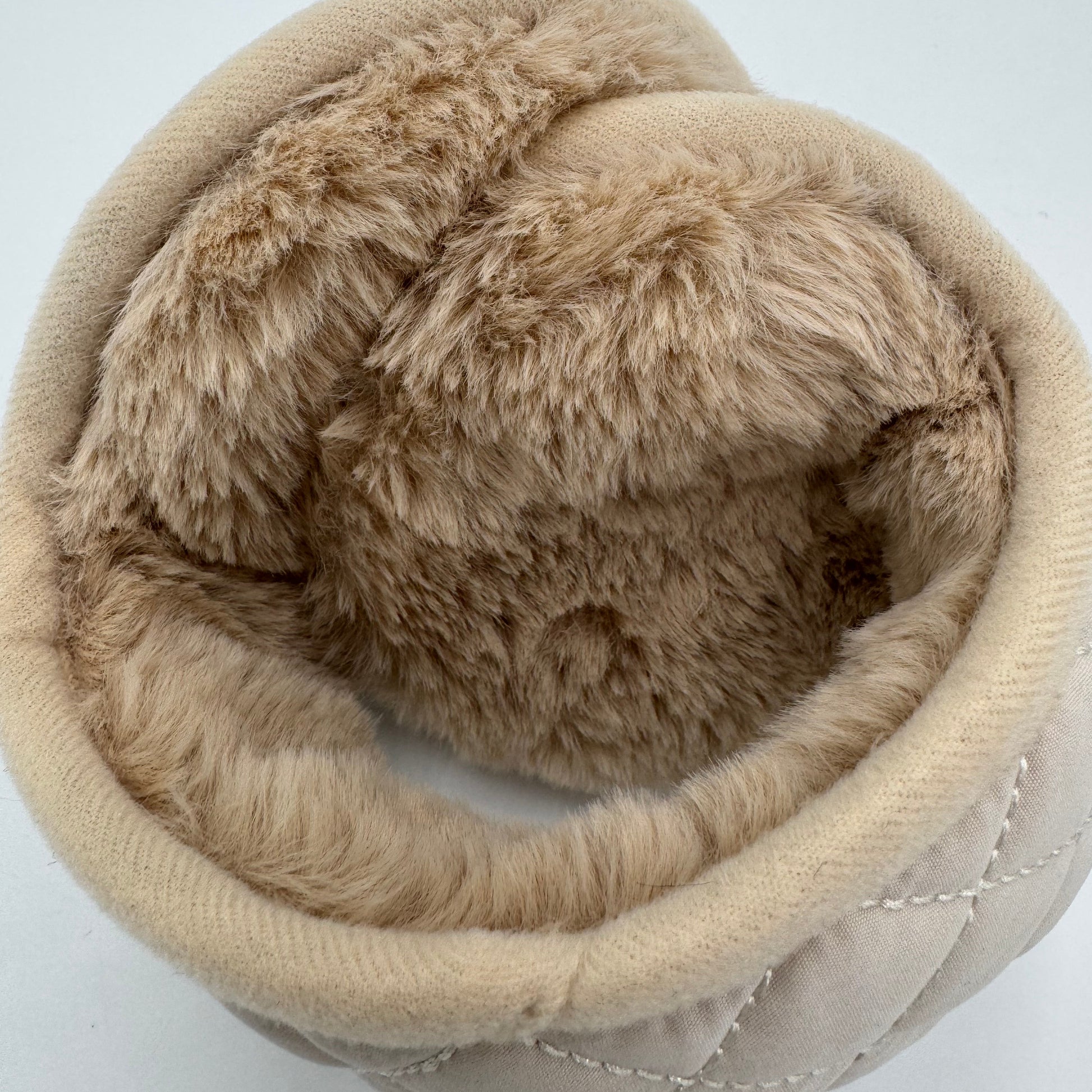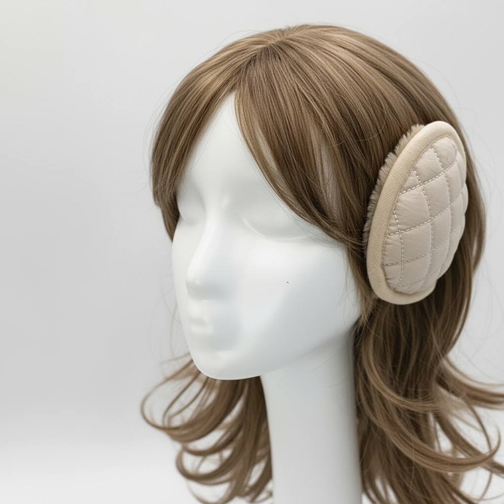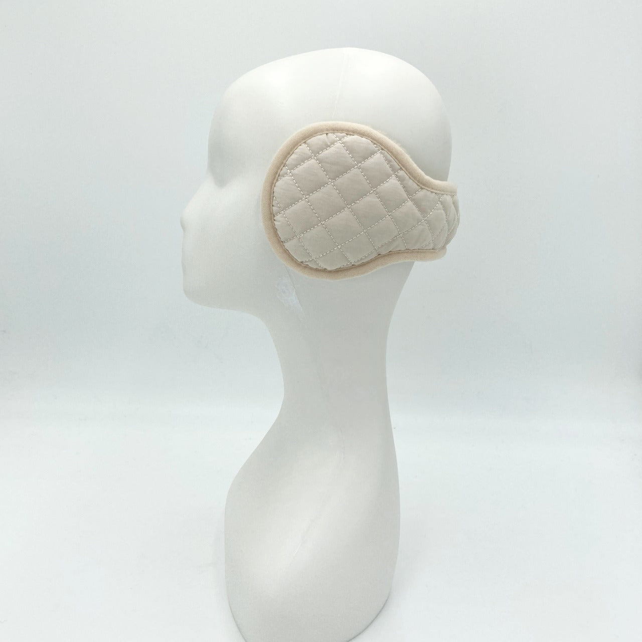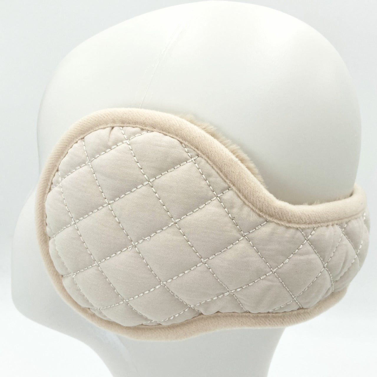 キルトステッチ×ファーのイヤーマフはコンパクとで軽量でスタイルを選ばず、コーディネイトしやすいのが特徴。