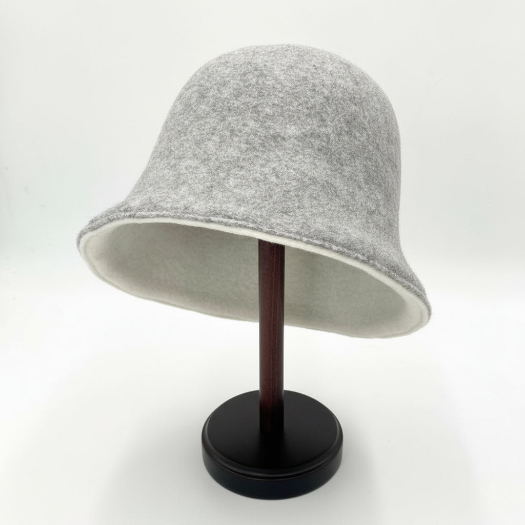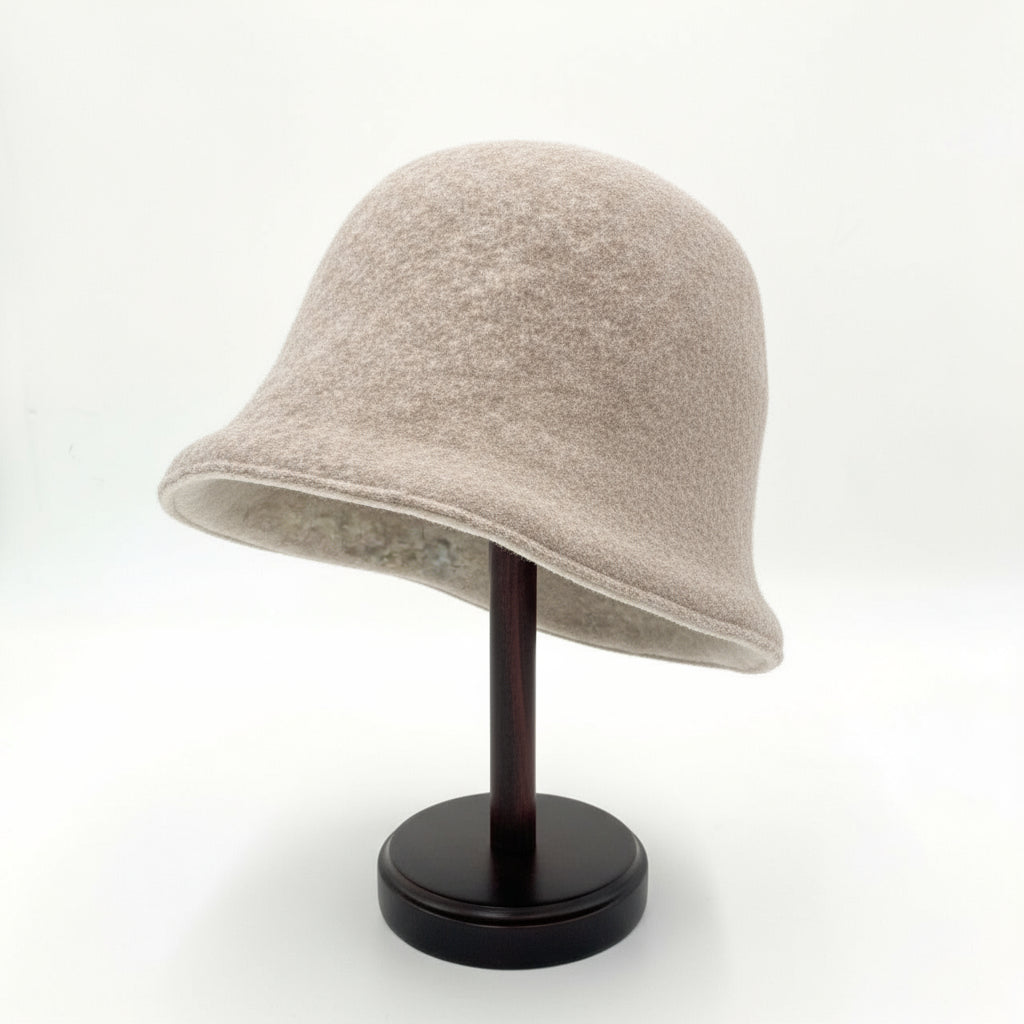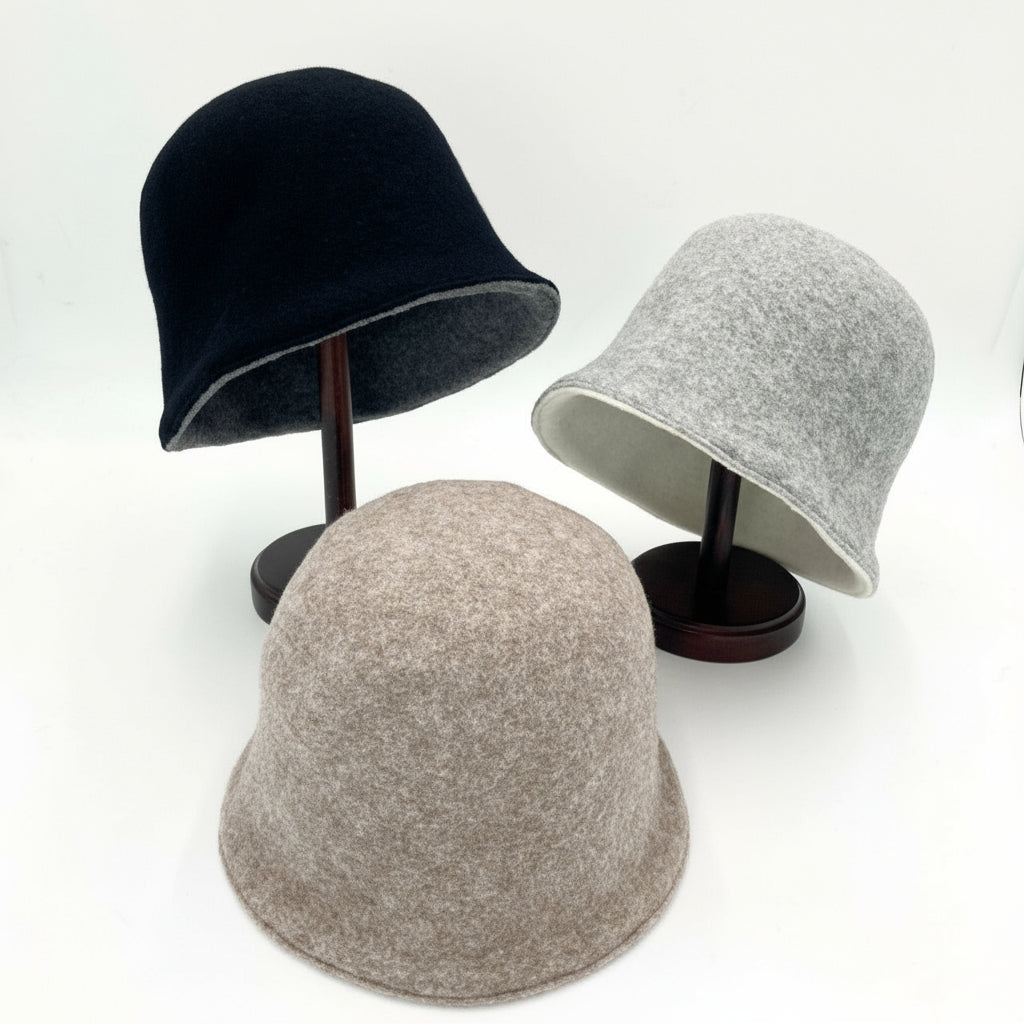 ナチュラルカラーで色合わせしたリバーシブルハット。やわらかい雰囲気です。気分によって色を変えて被って。