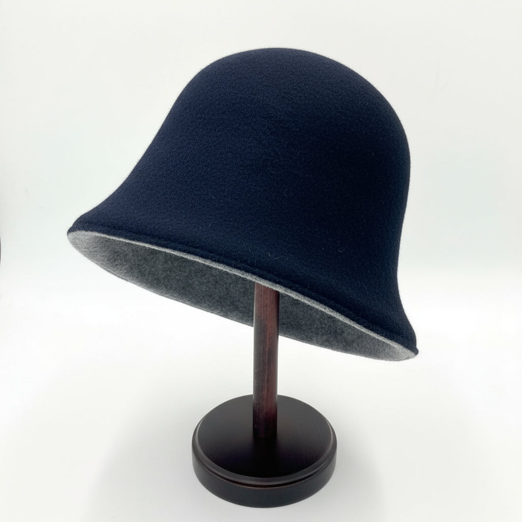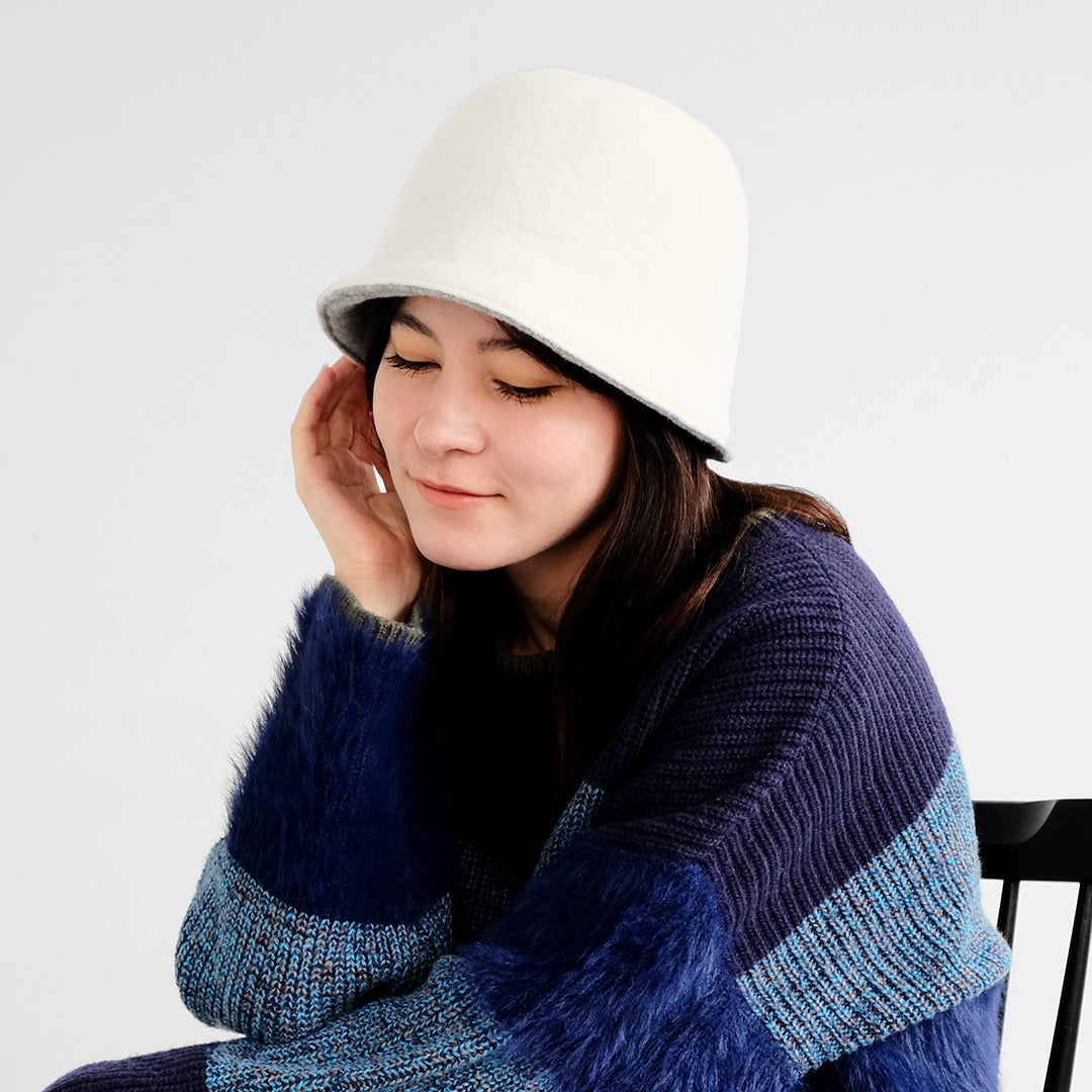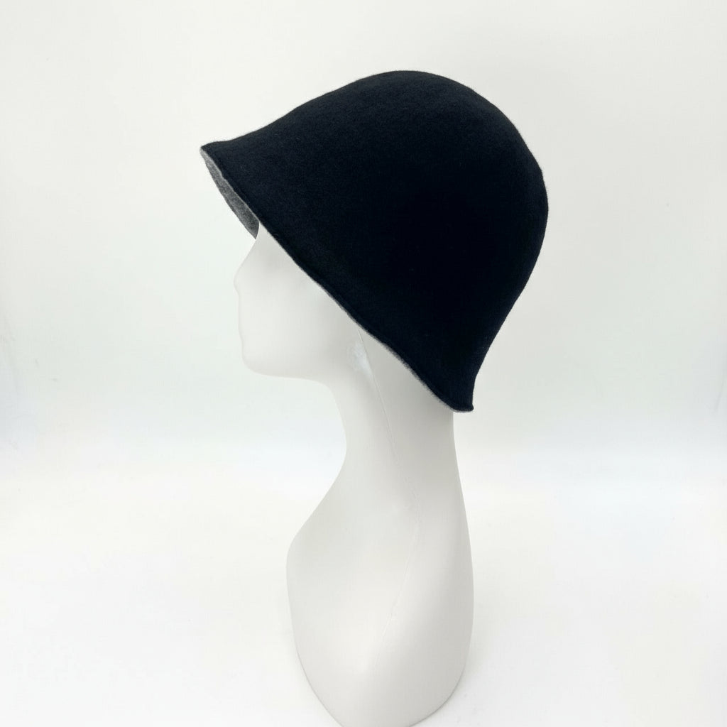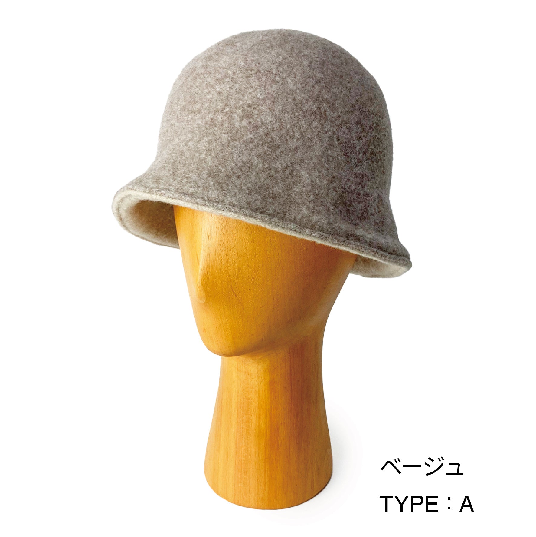 ナチュラルカラーで色合わせしたリバーシブルハット。やわらかい雰囲気です。気分によって色を変えて被って。